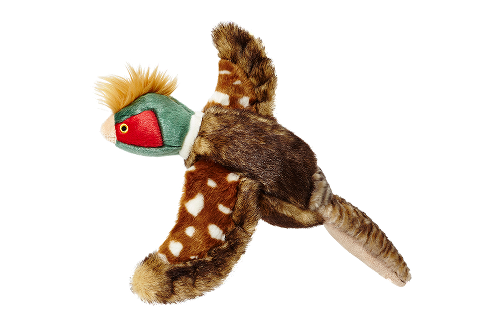 Bring out the inner hunter in your pup with Ike the Flying Pheasant. He’s perfect for chasing or shaking by his floppy wings and tail feathers.