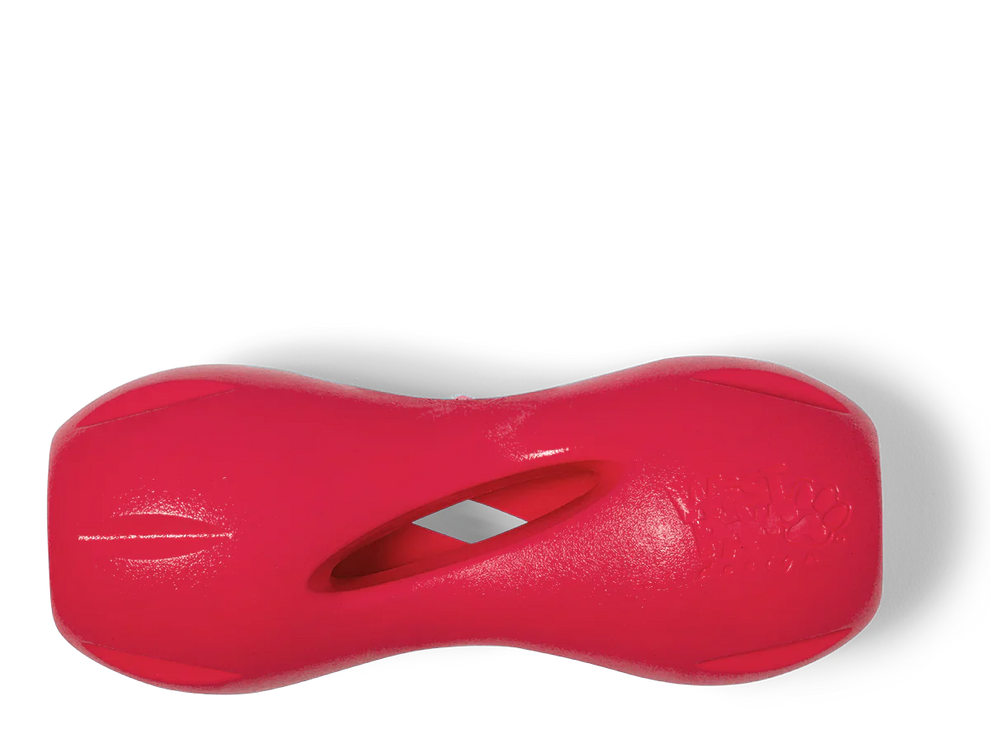 Qwizl is a super tough treat toy that's brilliantly designed to extend the life of expensive dog treats while keeping dogs busy. Side openings release scent and taste while the continuous interior hole allows treats to extend out. Flexible ridges grip multiple sizes of treats.