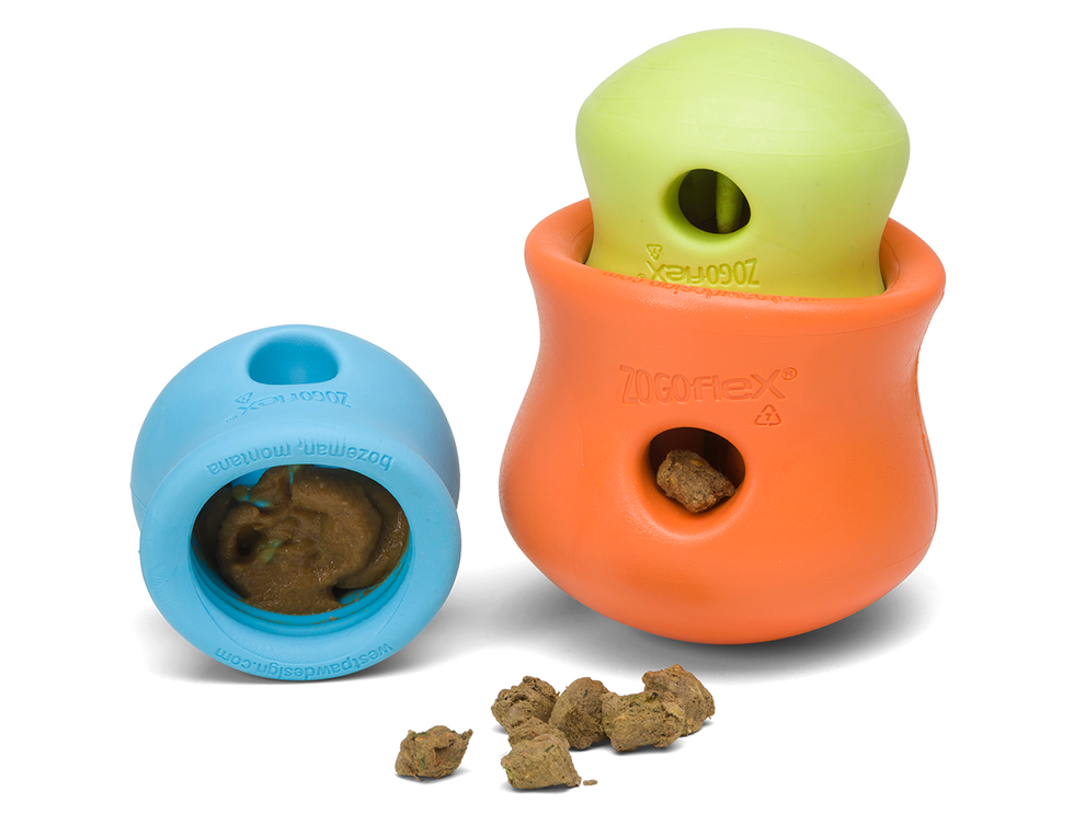 - To keep your dog motivated, change up the challenge with West Paw’s other puzzle-treat toys – Qwizl®, Tux® and Rumbl®